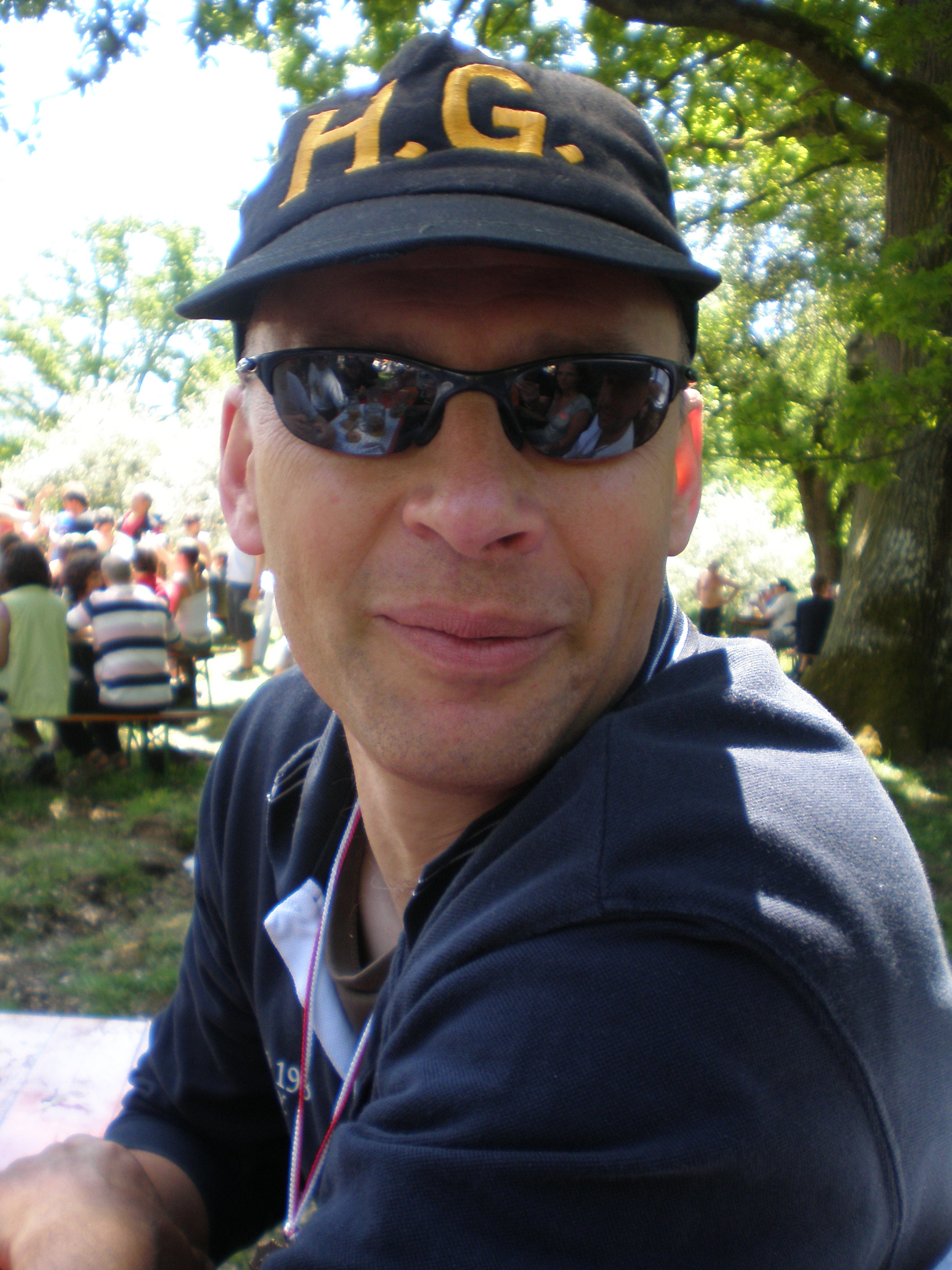 AXELS DILEMMA: Er kam zu spaet und dachte wir waeren noch nicht da. Wir sahen belustigt zu wie er eine Bank und dann das Bier organisierte. Dann kam unser Anruf ueber 10 m Distanz ... Handy is ganz einfach geil ... .